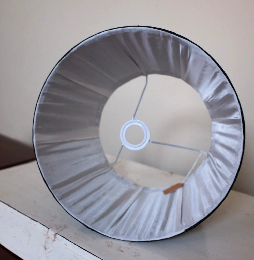 New LINEN Pleated Black Round Drum Lined Lamp Light Shade