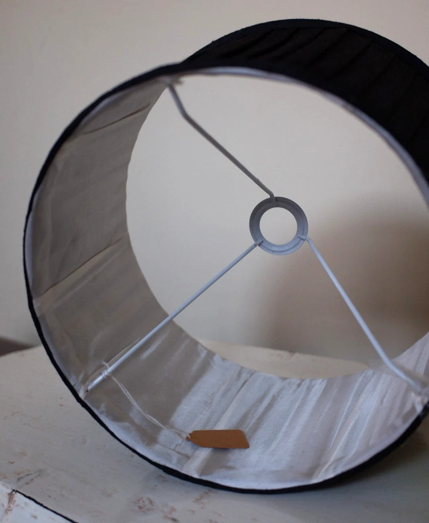 This is a beautiful linen, pleated shade, a round DRUM shape with lining in black. Ideal in modern or traditional interiors to brighten up any space. A good quality shade in choice of new sealed in original packaging or ex-display unsealed (may have minor marks)