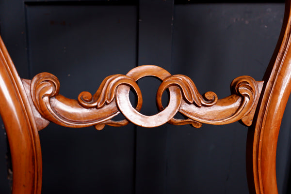 Pair of Antique Victorian Dining Chairs WALNUT Wood Carved Balloon Back